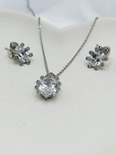 نیم ست زنانه و دخترانه نقره با نگین درخشان طرح گل ۲۲۲