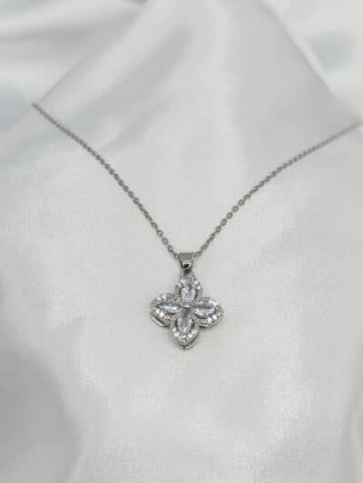 گردنبند گل نگین دار برند Stainless Steel کد ۲۰۳۸