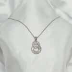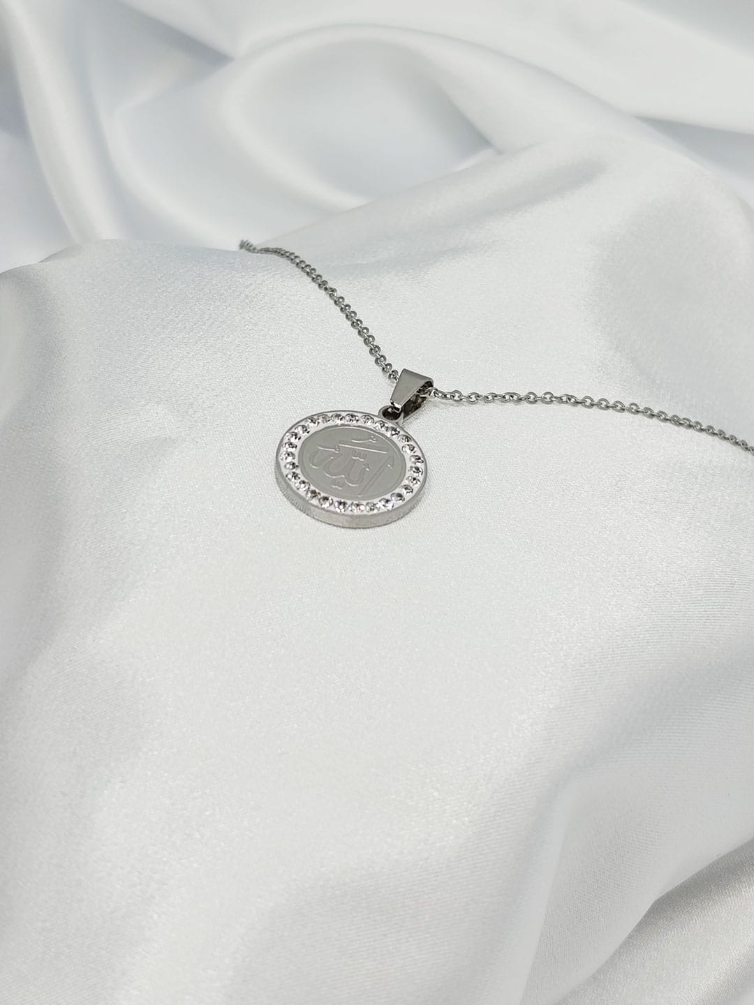 گردنبند الله نگین دار برند Stainless Steel کد ۲۰۳۴، انتخابی بی نظیر برای دوستداران جواهرات مذهبی و باکیفیت است. این گردنبند زیبا از جنس استیل ضد زنگ (Stainless Steel) ساخته شده و به دلیل مقاومت بالا در برابر زنگ زدگی و تغییر رنگ، گزینهای مناسب برای استفاده روزمره و طولانی مدت است. نگین های براق و درخشان اطراف مدال، جلوه ای خاص و لوکس به این گردنبند بخشیدهاند.