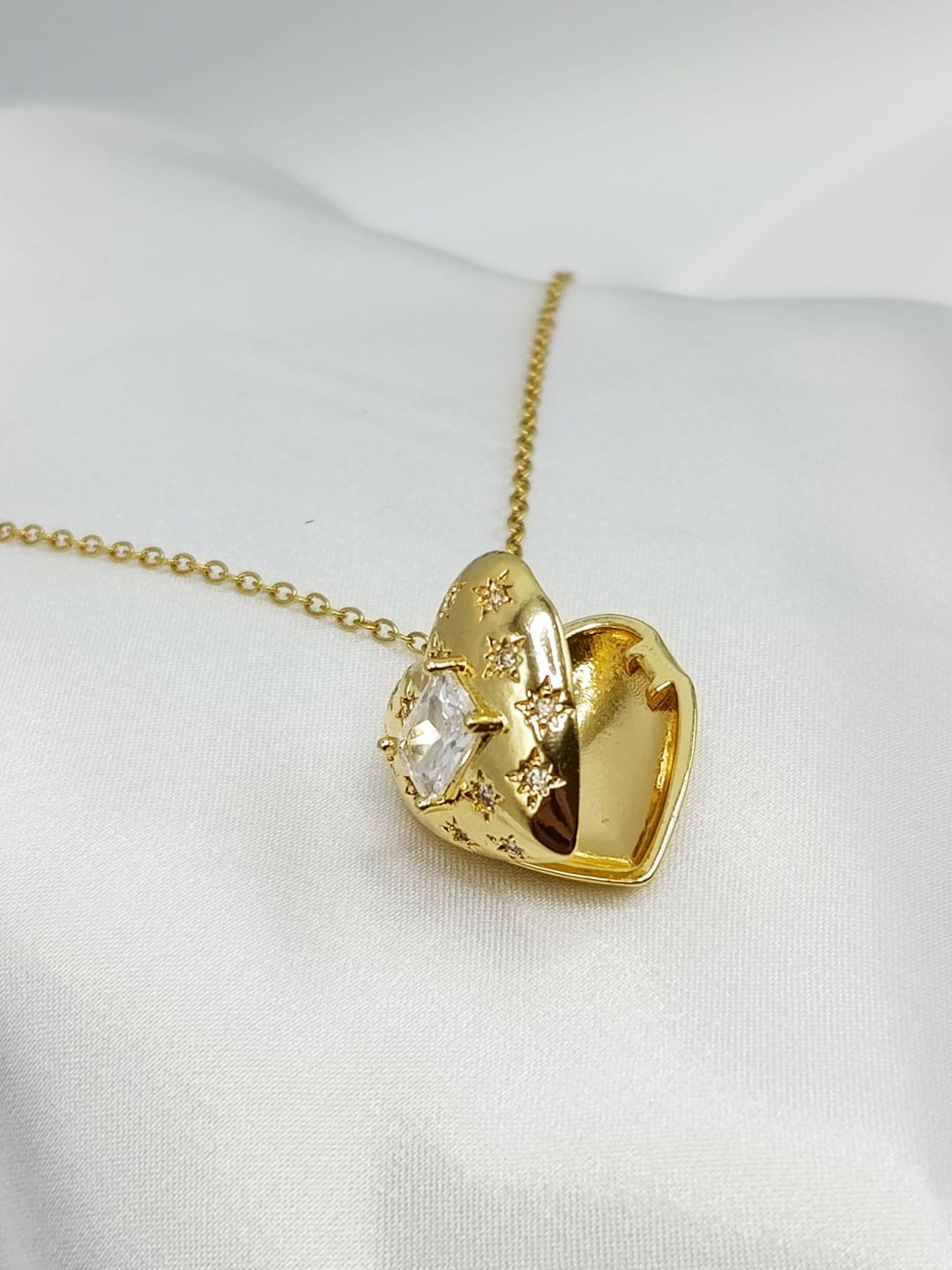 گردنبند قلب طلایی نگین دار برند Stainless Steel کد ۲۰۴۴