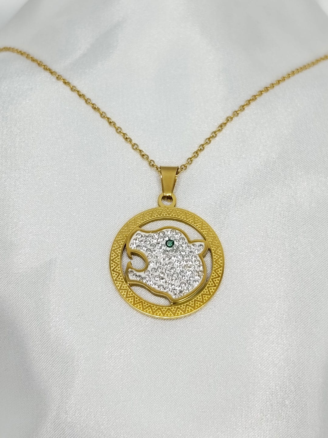 گردنبند ببر نگین دار طلایی برند Stainless Steel کد ۲۰۳۶