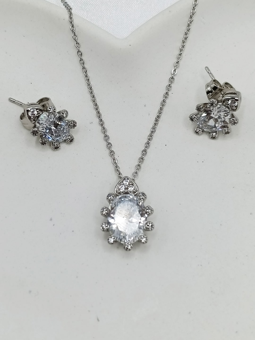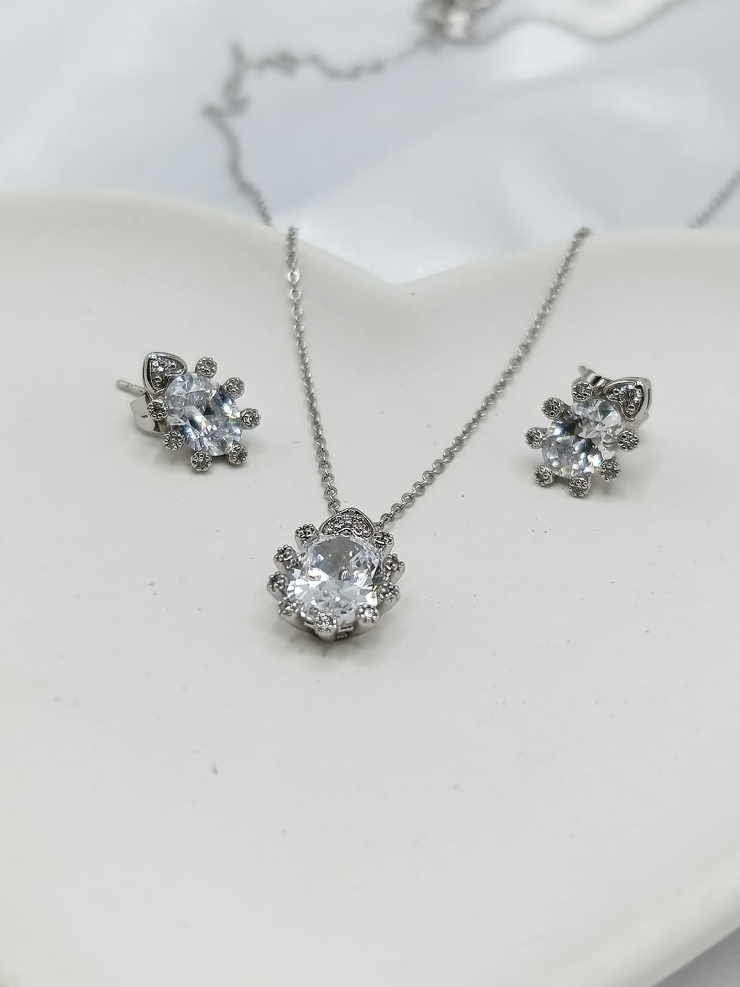 نیم ست زنانه و دخترانه نقره با نگین درخشان طرح گل ۲۲۲