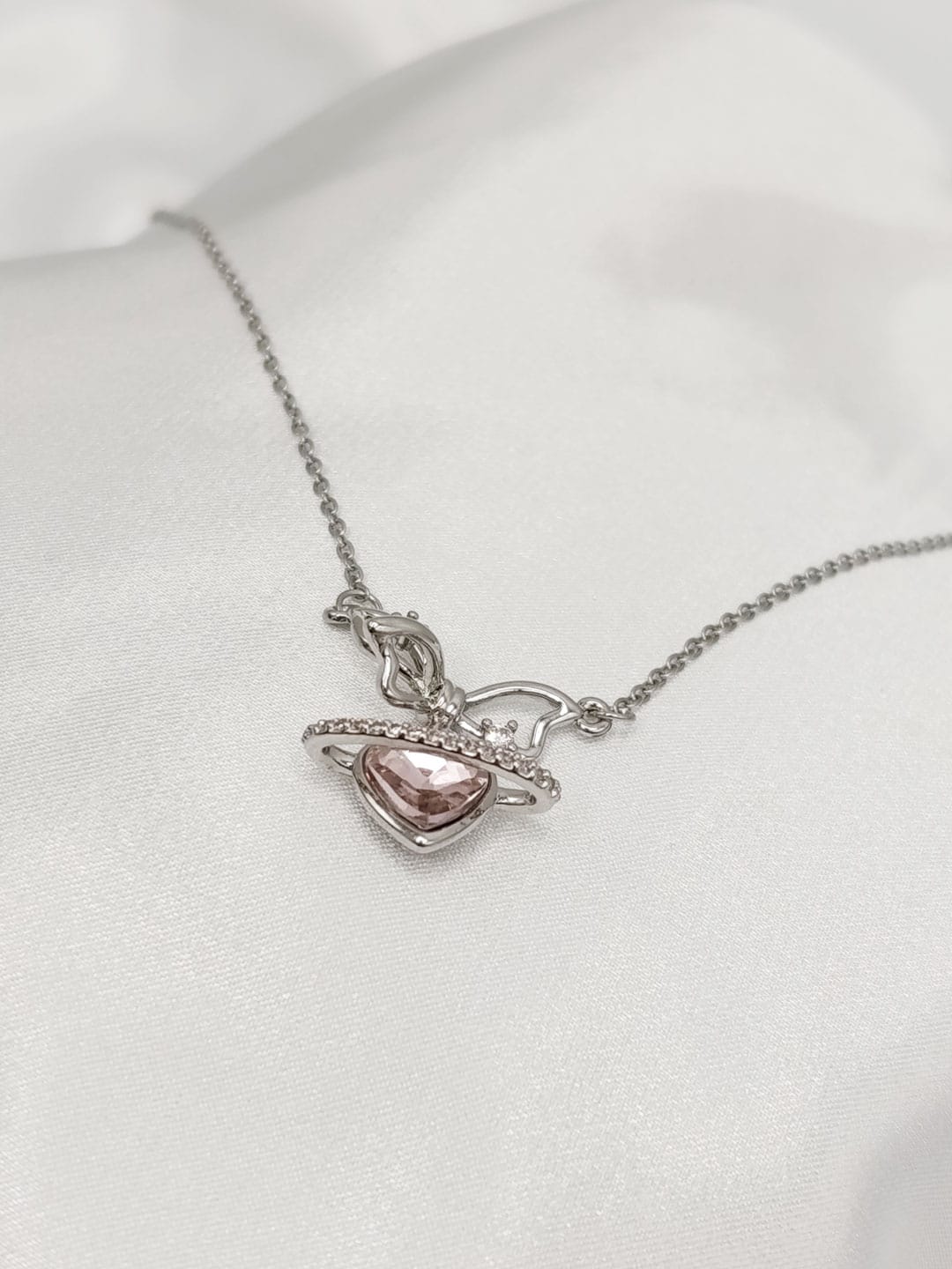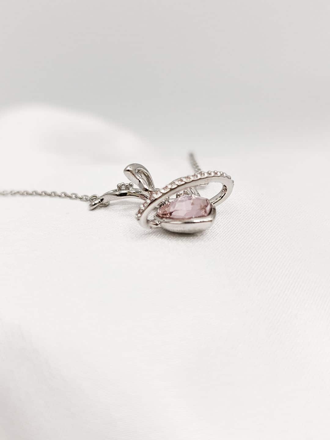 گردنبند نقره ای قلب نگین دار برند Stainless Steel کد ۲۰۴۵