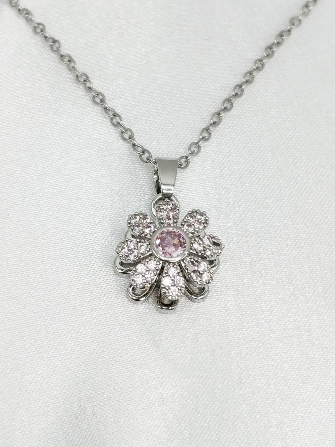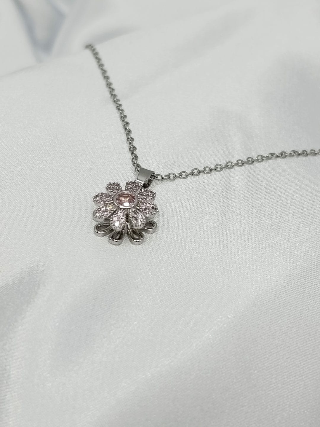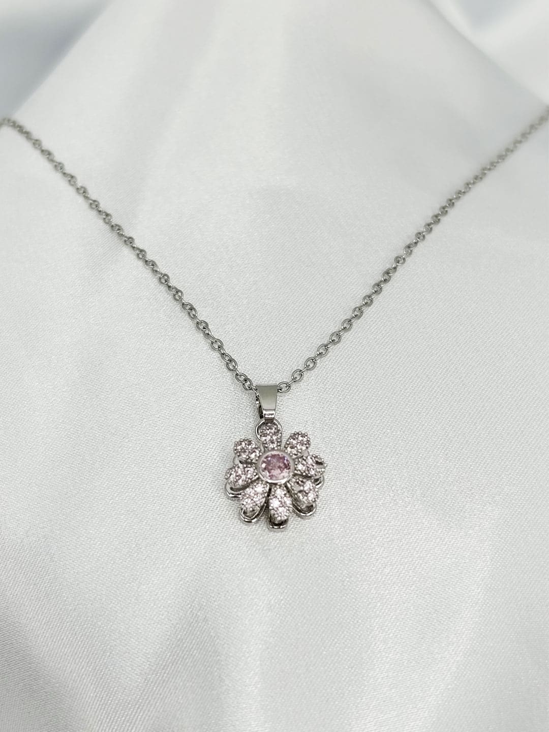 گردنبند گل نگین دار برند Stainless Steel کد 2040