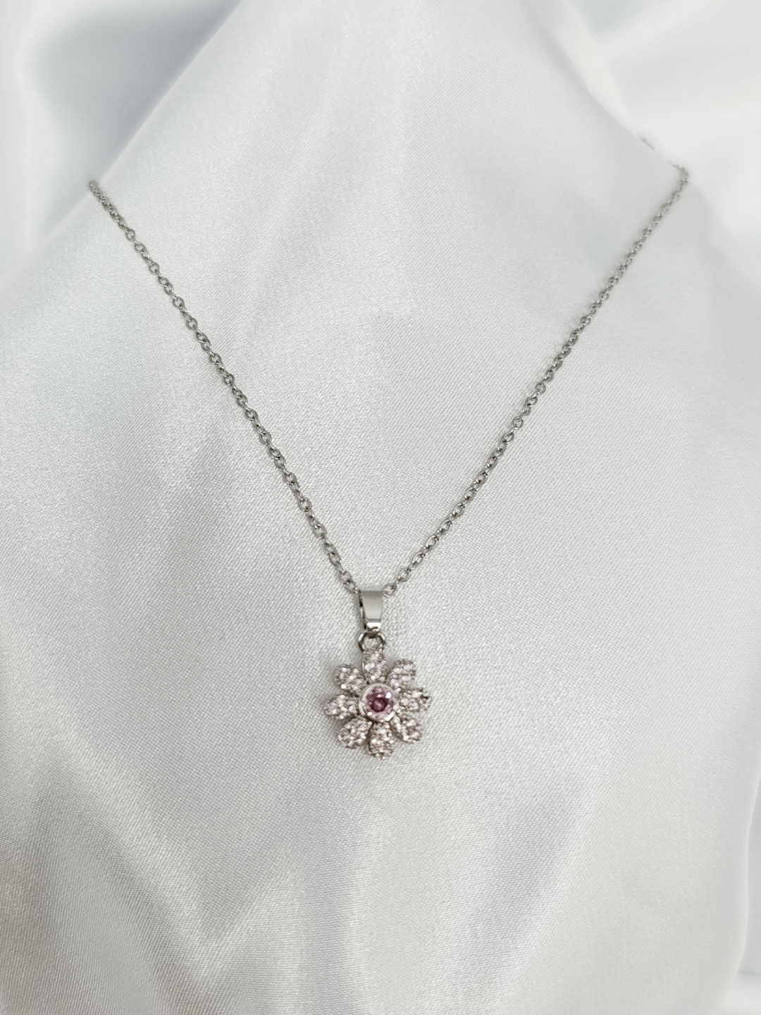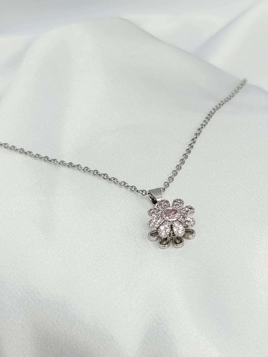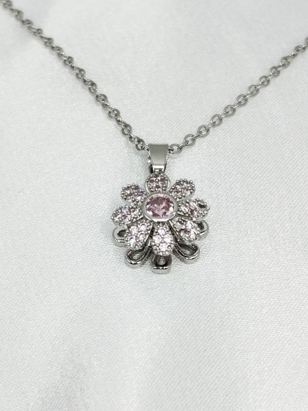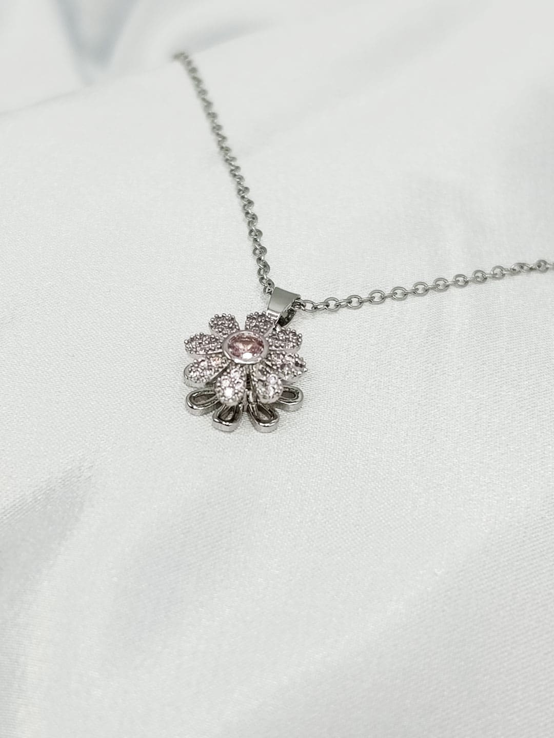گردنبند گل نگین دار برند Stainless Steel کد 2040