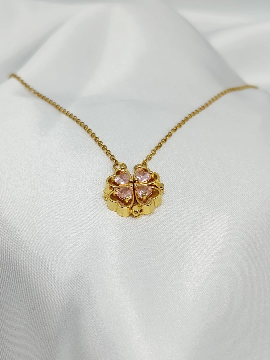 گردنبند گل نگین دار برند Stainless Steel کد 2038