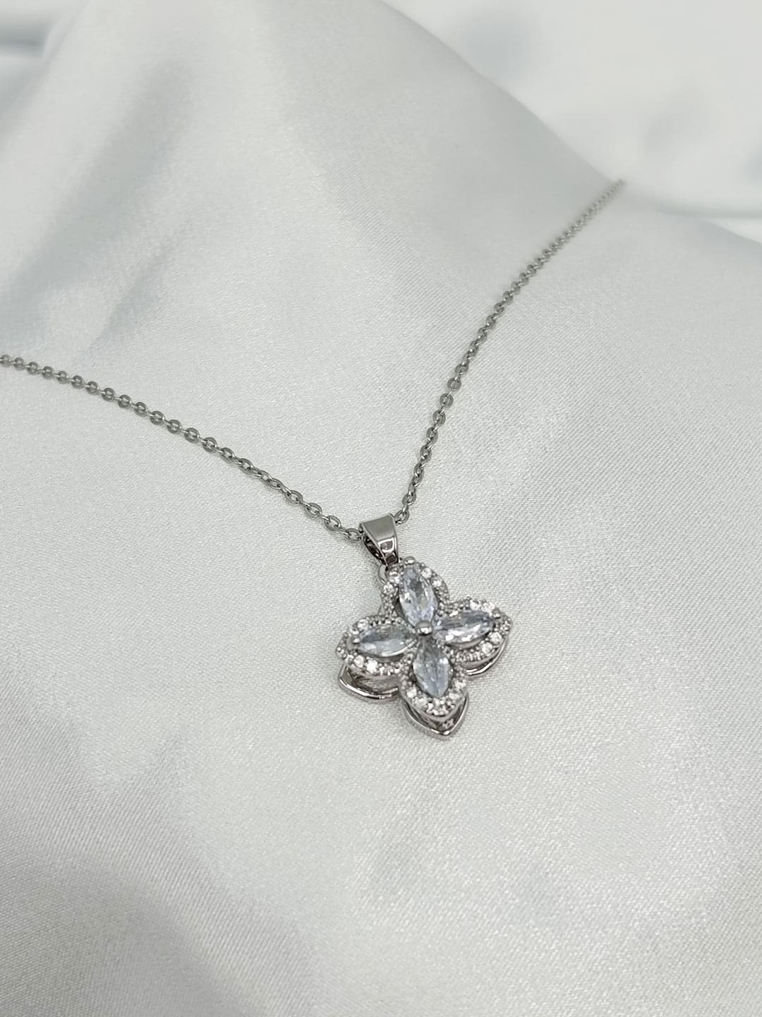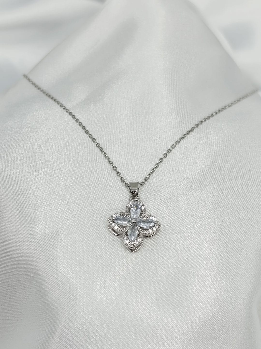 گردنبند گل نگین دار برند Stainless Steel کد 2040