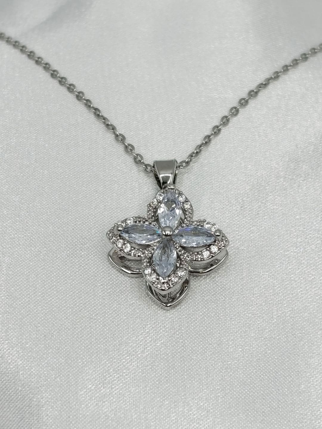 گردنبند گل نگین دار برند Stainless Steel کد 2039
