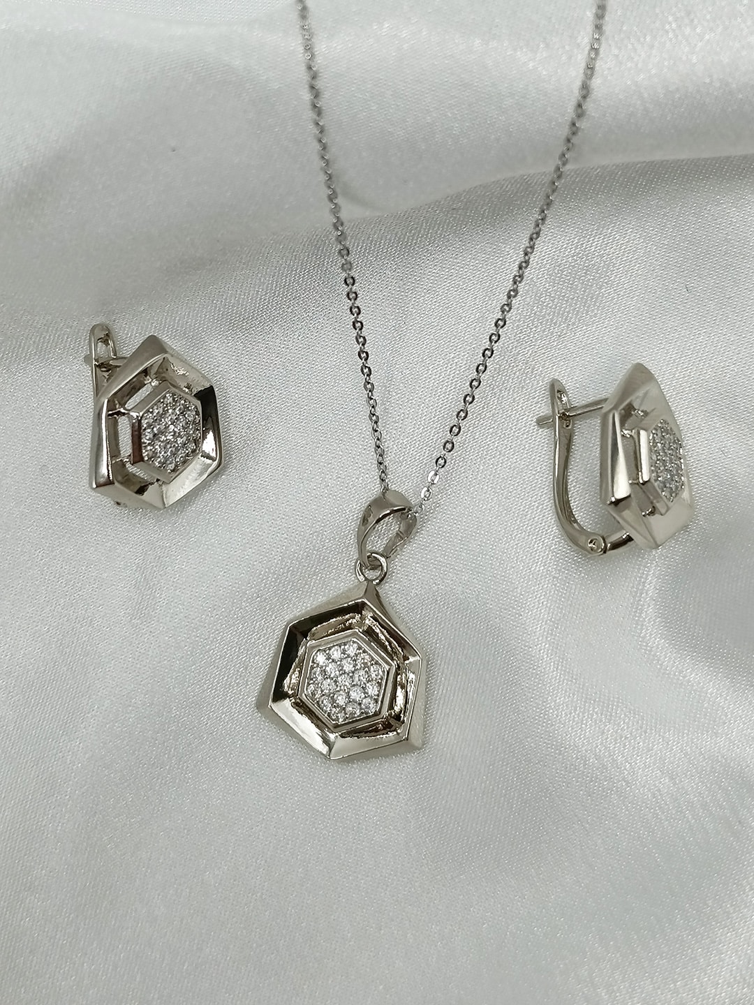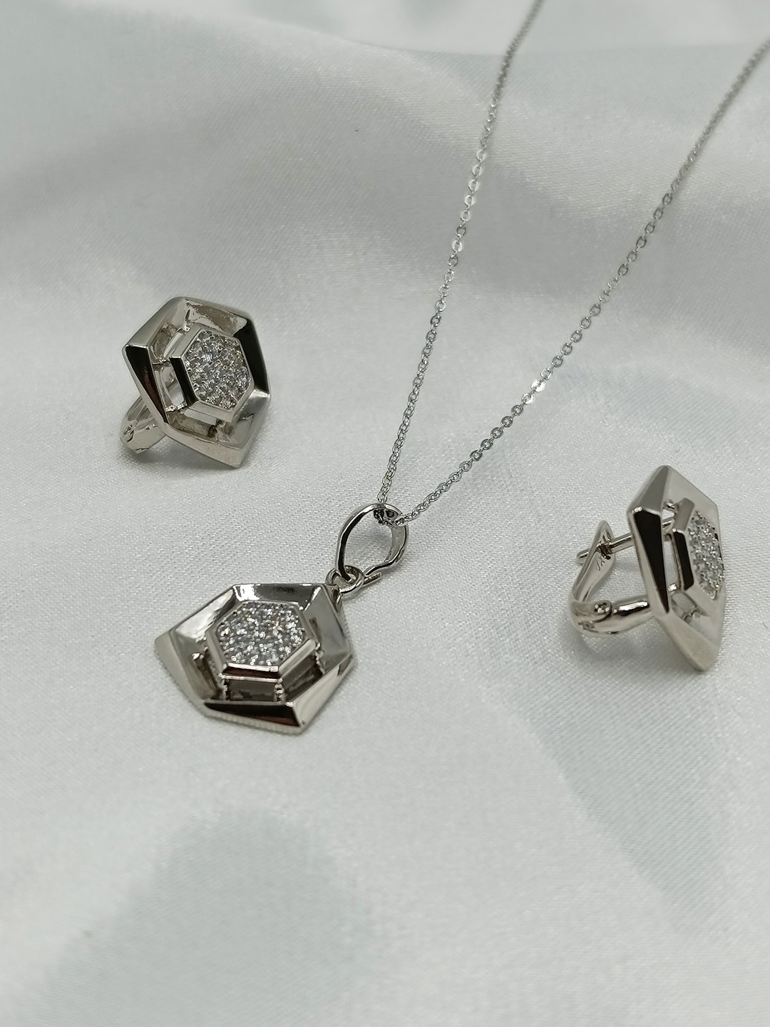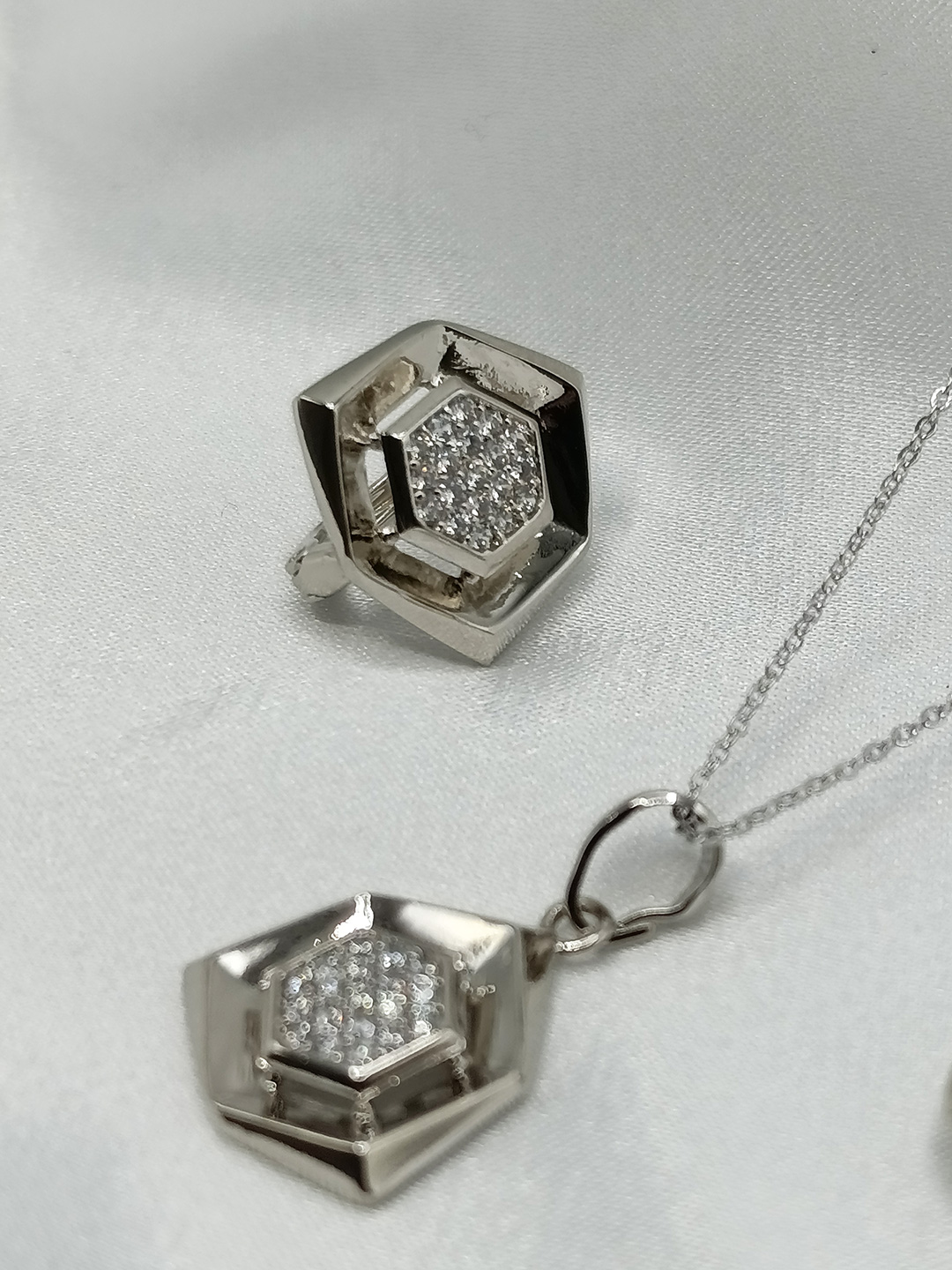 - نگین های ریز دور تا دور گردنبند و گوشواره