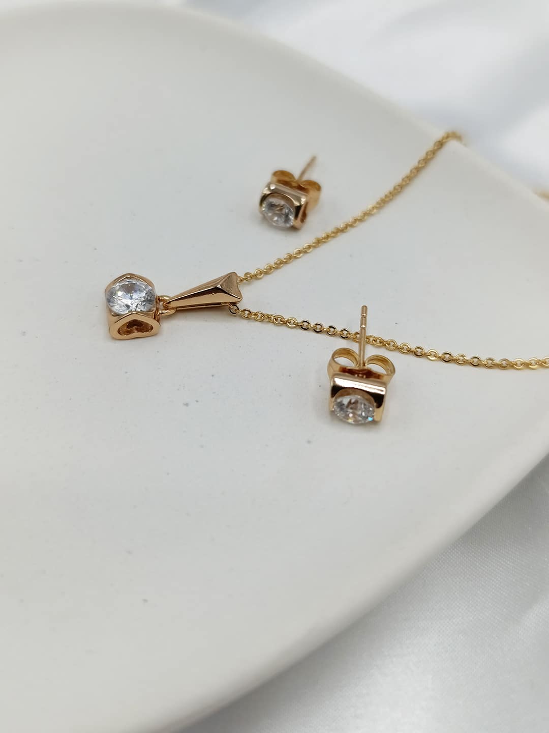 نیم ست زنانه و دخترانه نقره با نگین درخشان طرح گل 222