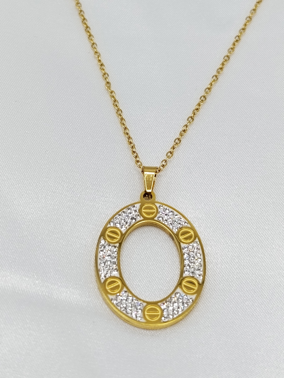 گردنبند بیضی طلایی برند Stainless Steel کد ۲۰۱۹