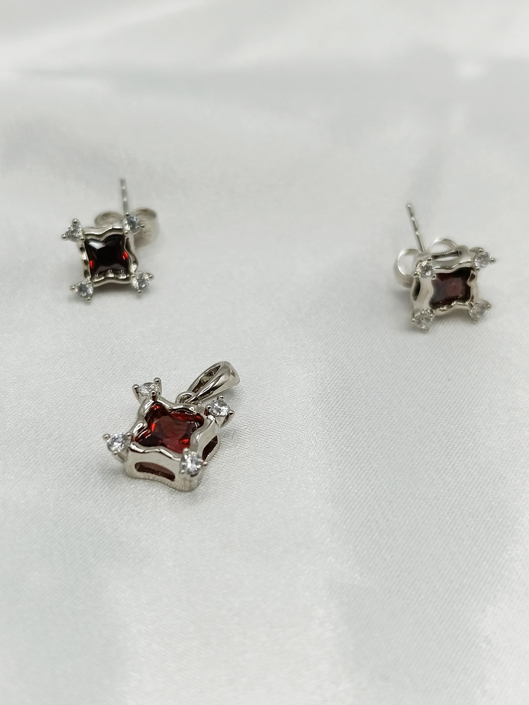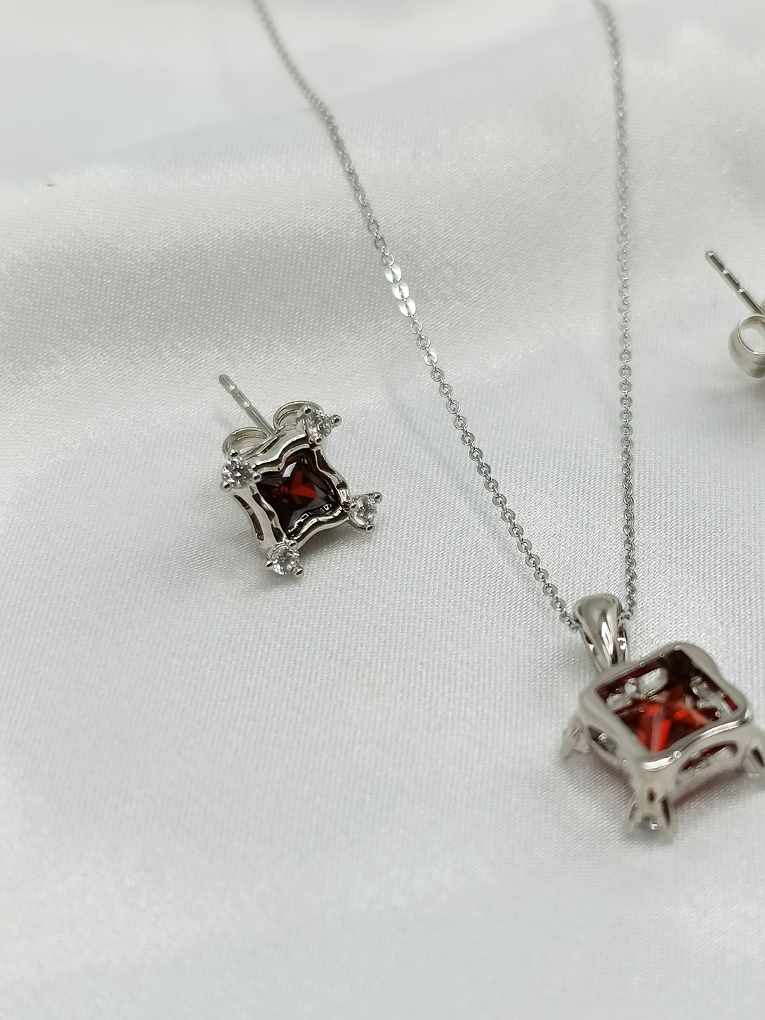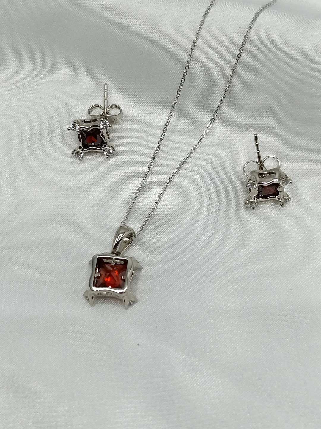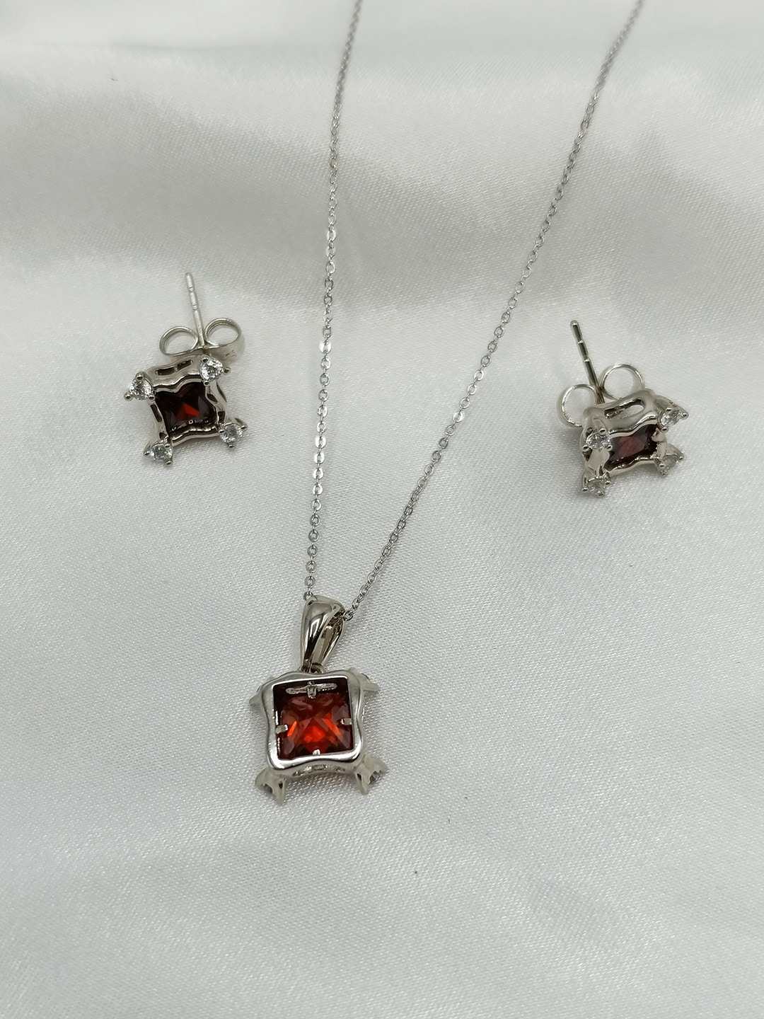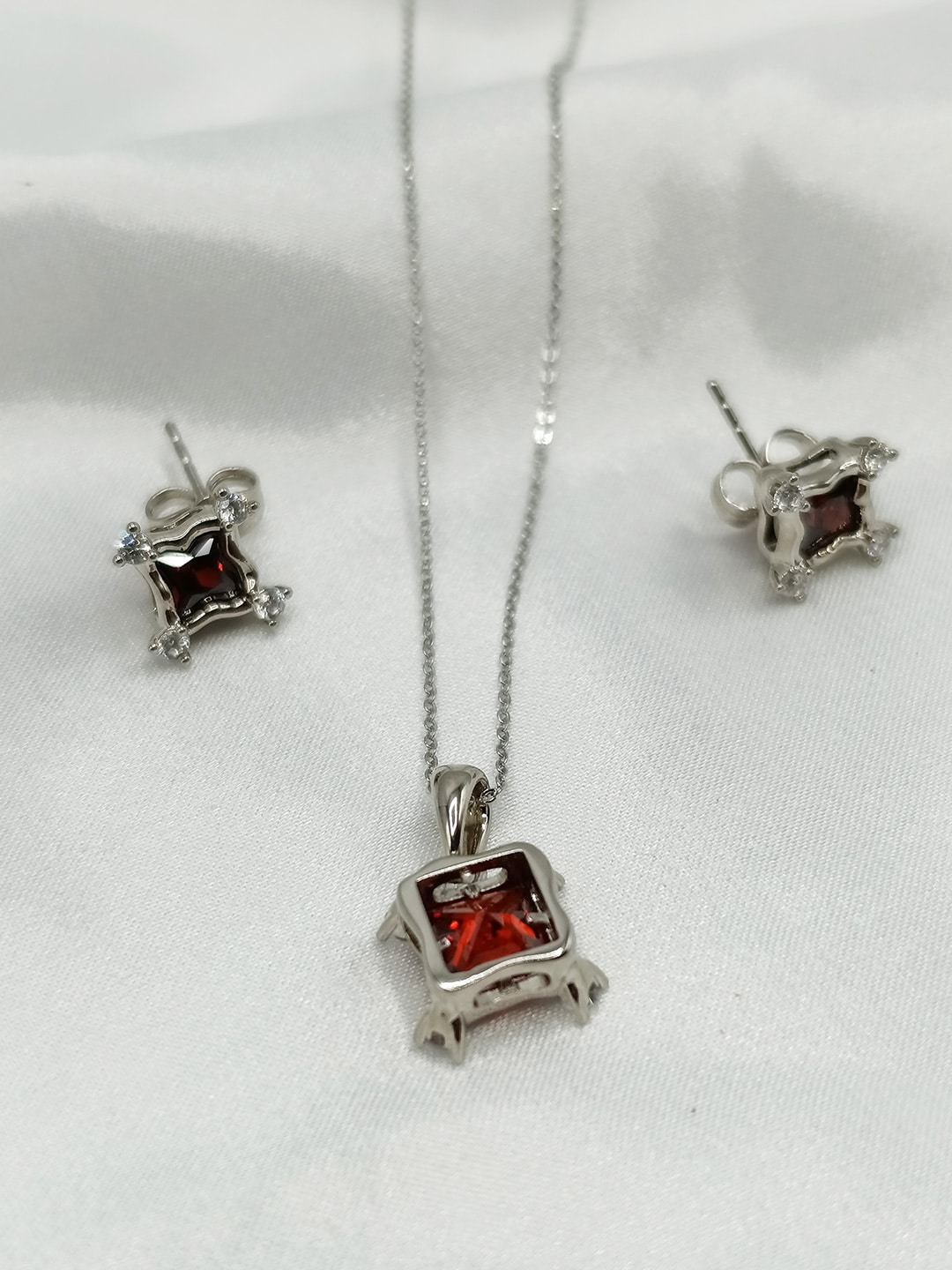 نیم ست زنانه ژوپینگ یاقوتی مربعی شکل بدون زنجیر کد ۲۱۹۲