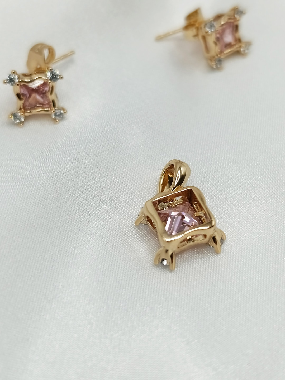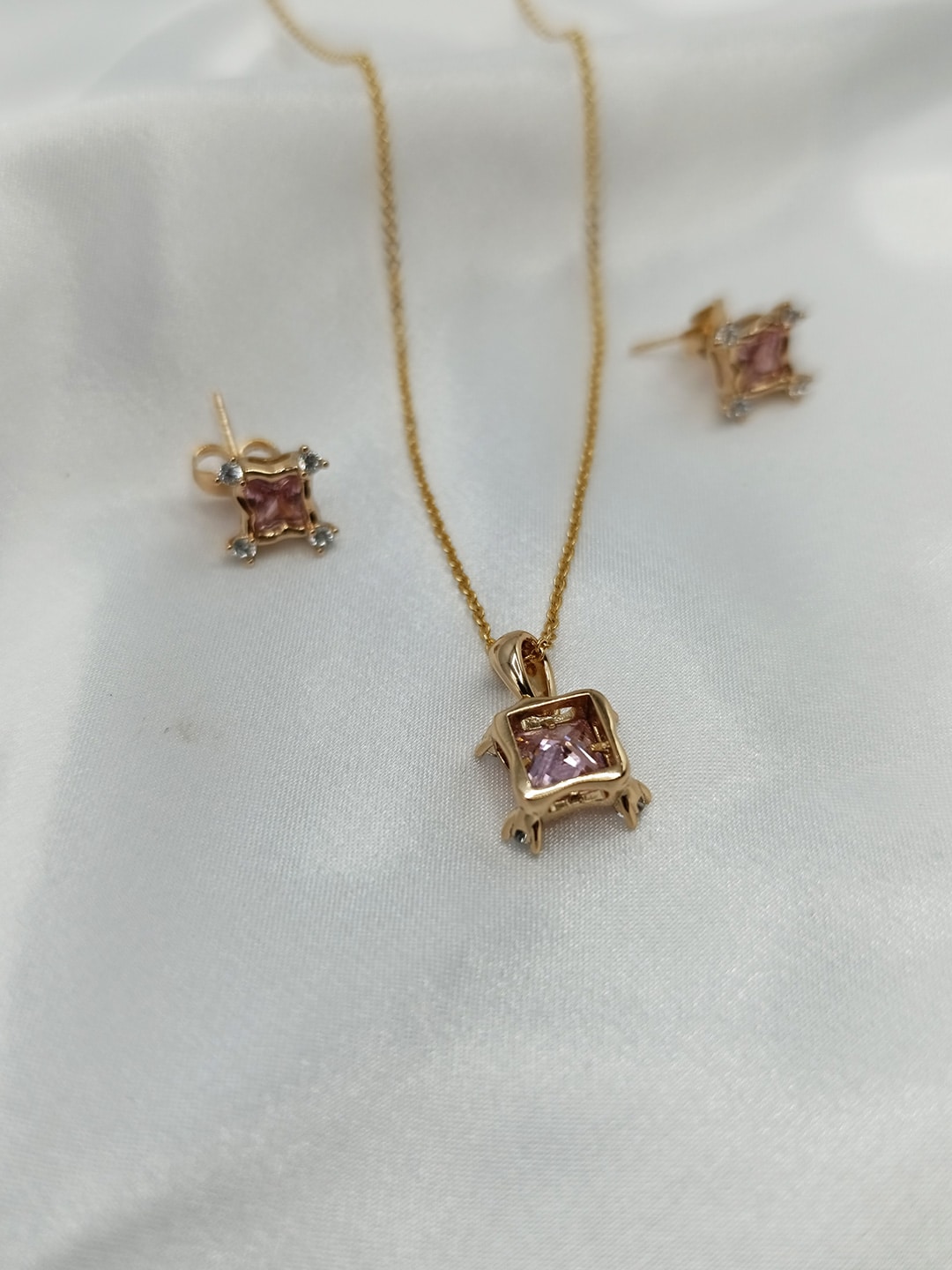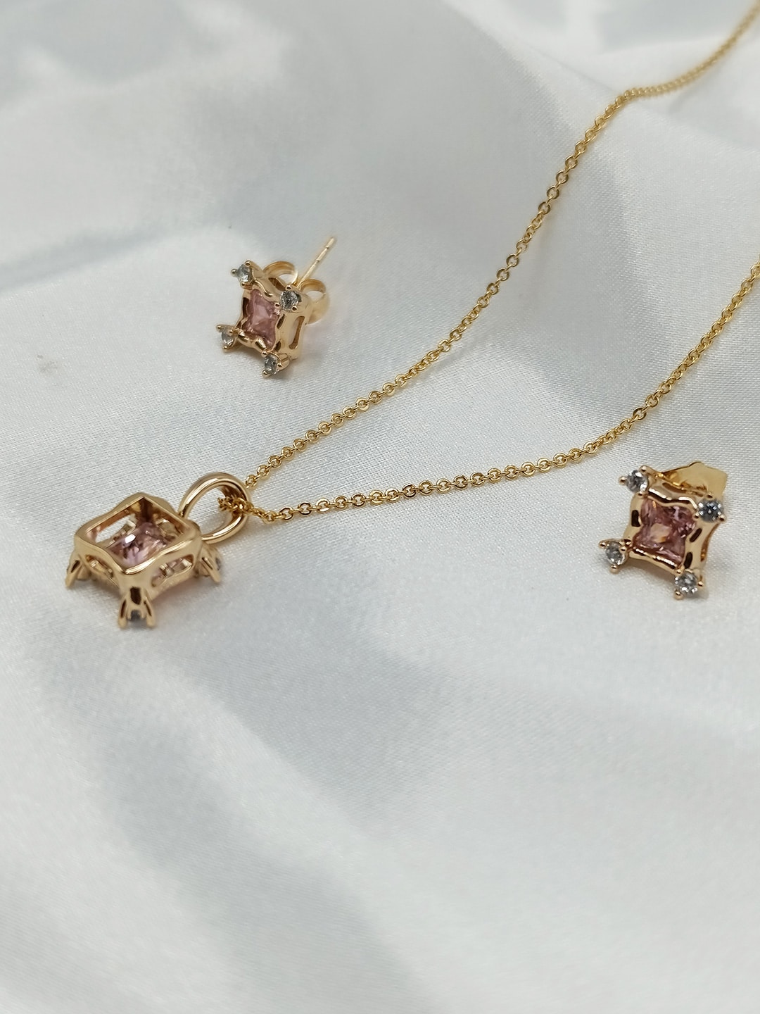 نیم ست زنانه ژوپینگ یاقوت صورتی رنگ مربعی شکل بدون زنجیر کد ۲۱۹۱