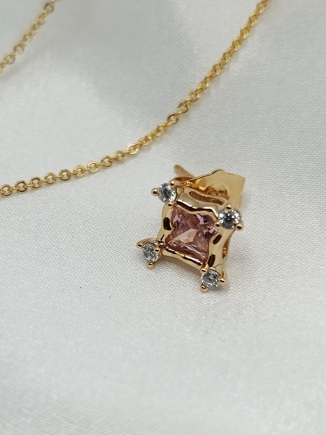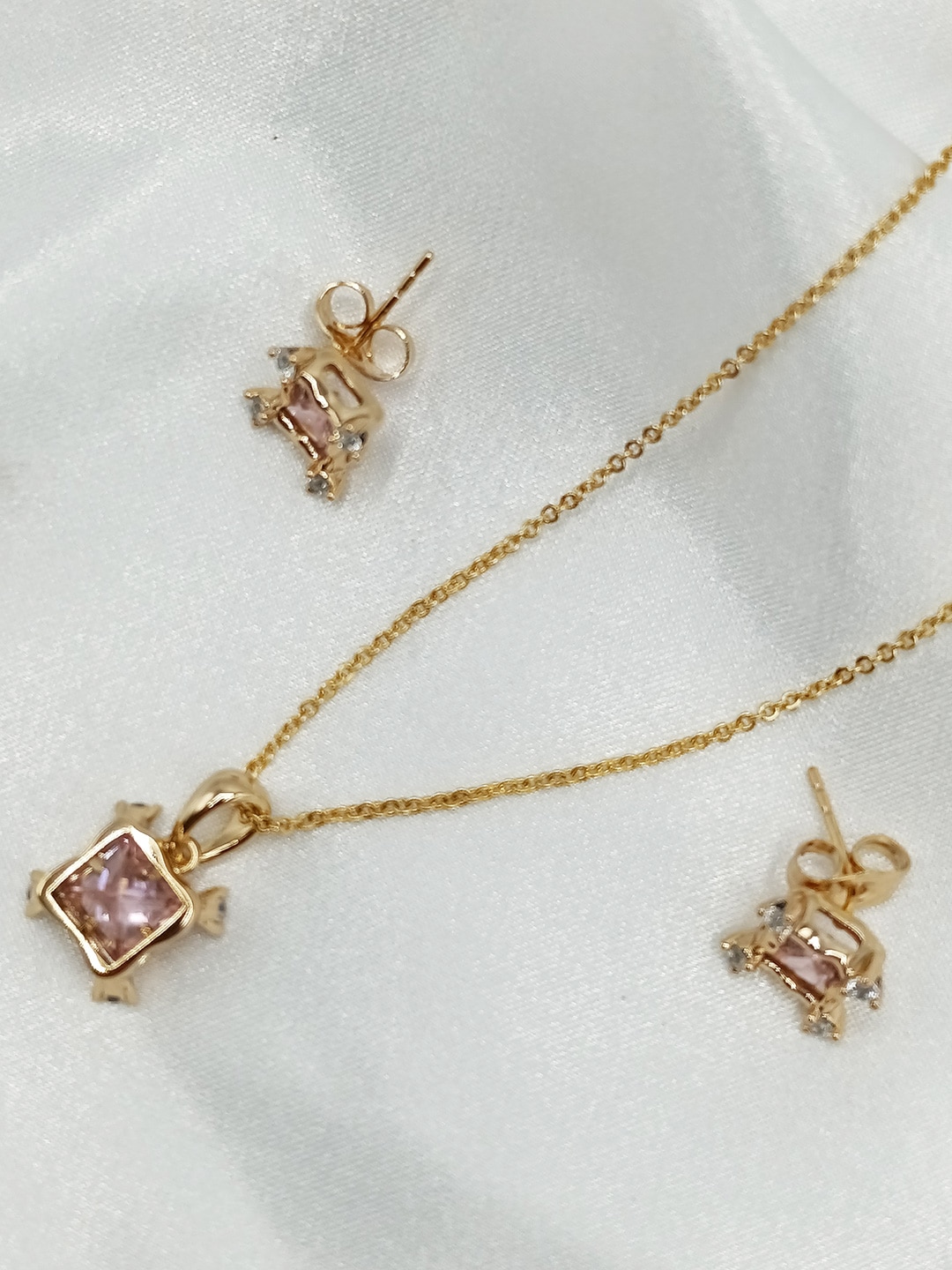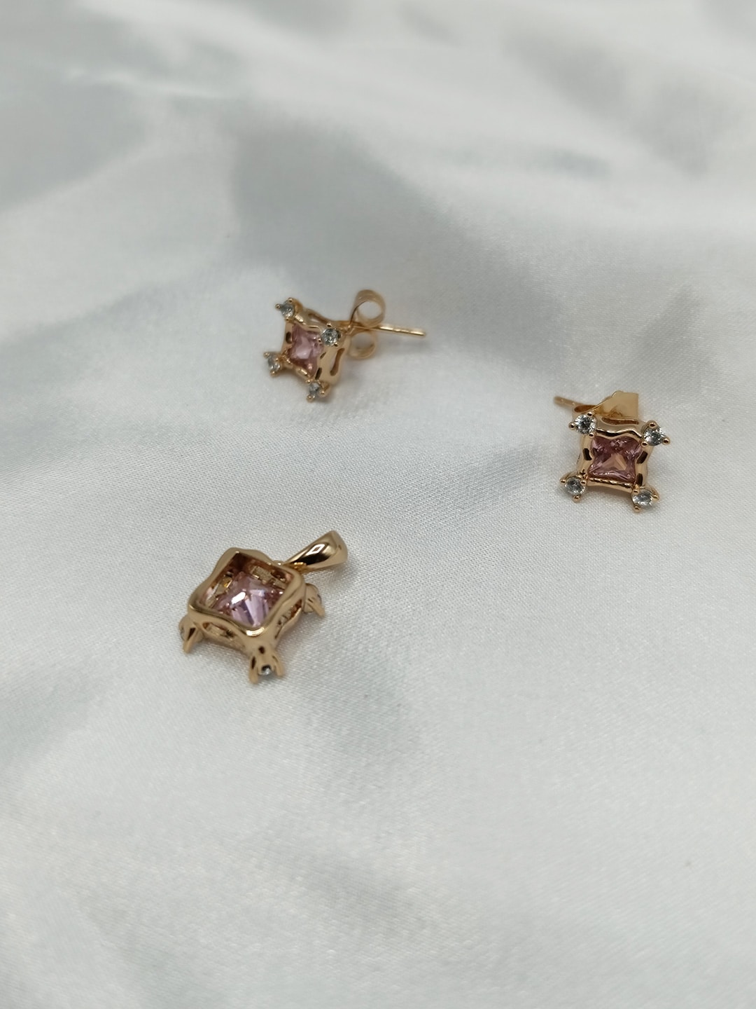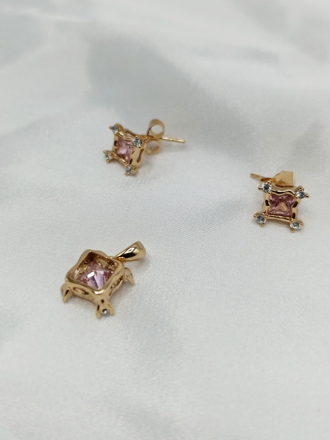 نیم ست زنانه ژوپینگ یاقوت صورتی رنگ مربعی شکل بدون زنجیر کد ۲۱۹۱